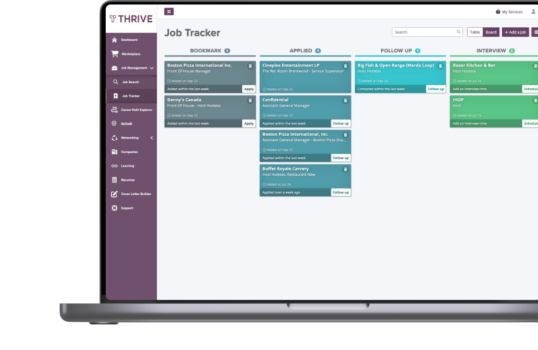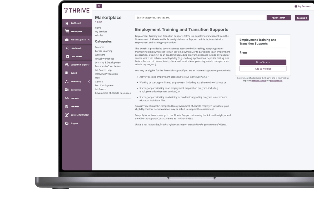 Thrive works to support Albertans seeking a broad array of digital services and tools to support their job search and helping to prepare for and find their next job.