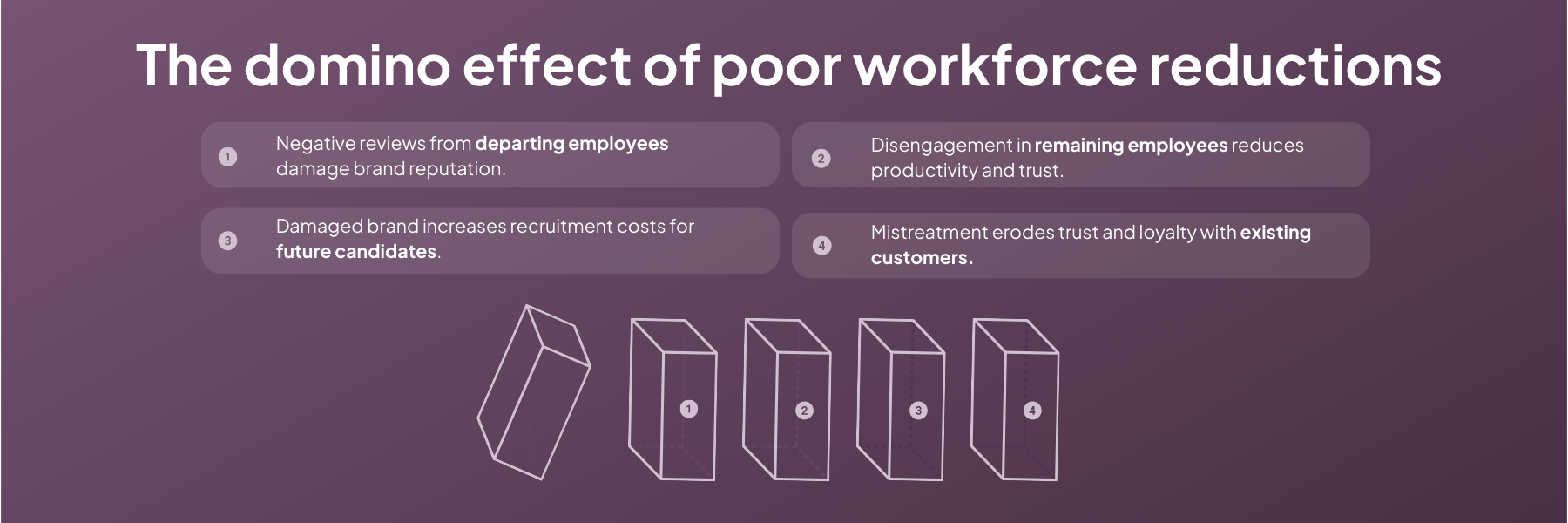 Every reduction ripples across four groups and adds unexpected, hidden costs: departing employees who share their experience, remaining employees who disengage, future recruits who demand premiums, and customers who vote with their wallets.